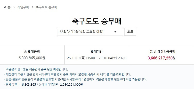 이월된 토토 승무패 1등상금이 36.6억이네요