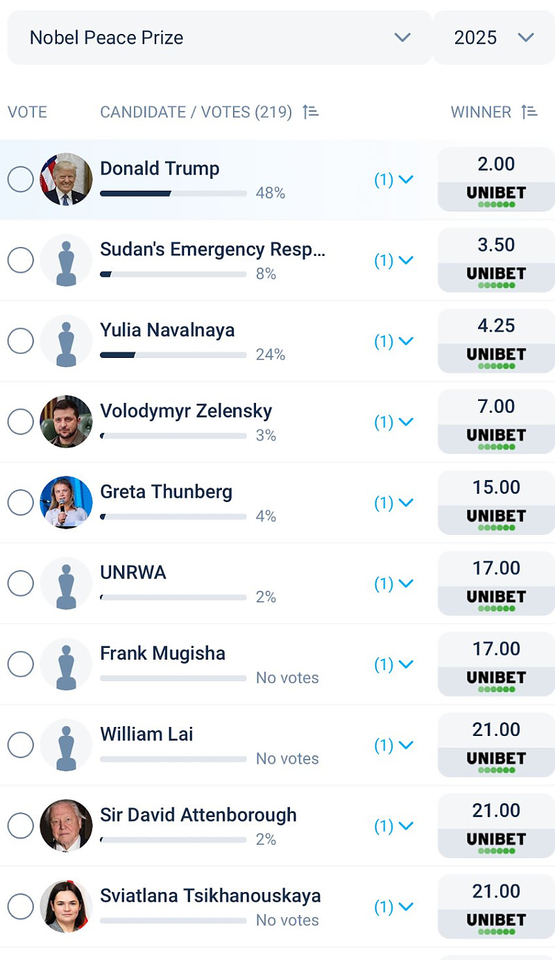 노벨평화상 배당률 근황 작성자 정보 슬롯공유소 작성 작성일 2025.10.07 12:03 컨텐츠 정보 306 조회 목록 본문 실제로 트럼프가 노벨평화상을 받을 일은 없겠죠? 노벨평화상 배당률 근황 SNS 공유 관련자료 댓글 0 등록된 댓글이 없습니다. 로그인한 회원만 댓글 등록이 가능합니다. 목록