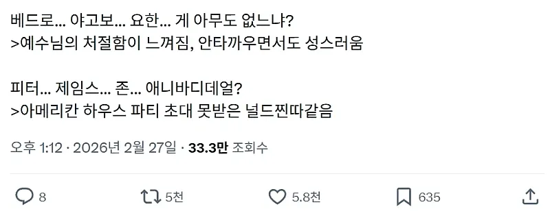 언어의 중요성 작성자 정보 슬롯공유소 작성 작성일 2026.03.03 15:12 컨텐츠 정보 0 조회 목록 본문 표트르...야코프...이반....아무도 없나?-> 수용소에서 수감자 찾는 경비병 같음 SNS 공유 관련자료 댓글 0 등록된 댓글이 없습니다. 로그인한 회원만 댓글 등록이 가능합니다. 목록
