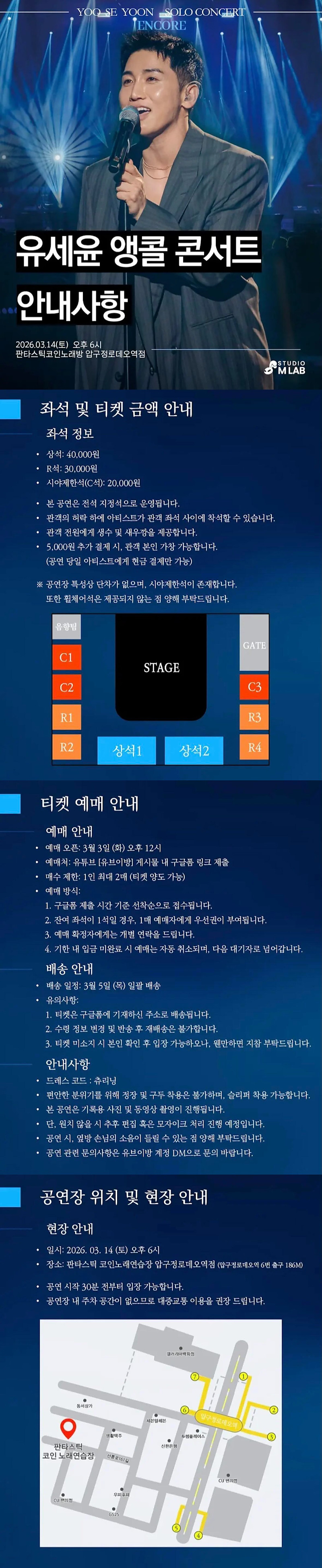 점점 스케일 커진다는 유세윤 콘서트 근황 작성자 정보 슬롯공유소 작성 작성일 2026.03.03 15:14 컨텐츠 정보 10 조회 목록 본문 유세윤 앵콜콘서트일시: 26년 3월 14일 (토) 오후 6시장소: 판타스틱노래방 압구정로데역점-좌석정보 -총 9석상석 : 40,000원R석 : 30,000원시야제한석 (C석) : 20,000원드레스코드: 츄리닝 / 구두착용불가 (슬리퍼 가능)현장에서 아티스트에게 5000원 결제시 관객본인 가창 가능 ( 현금결제만 가능 )좌석이 6석 => 9석으로 늘었네요 크크 SNS 공유 관련자료 댓글 0 등록된 댓글이 없습니다. 로그인한 회원만 댓글 등록이 가능합니다. 목록
