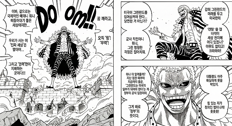 국가 자체가 도황이 되어 가는 천조국 작성자 정보 슬롯공유소 작성 작성일 2026.01.08 07:05 컨텐츠 정보 9 조회 목록 본문 이번에 그린란드와 관련된 미국 국토안보보좌관 인터뷰가 떴는데 그 내용이.. 보시다시피 마치 원피스 '도황'의 명대사를 떠올리게 하는 내용이더군요. 그래서 위 인터뷰 내용을 '도황' 말투로 바꿔달라고 한 뒤에 만화의 한 장면처럼 그려달라고 부탁해 봤는데.. 위화감이 없네요... SNS 공유 관련자료 댓글 0 등록된 댓글이 없습니다. 로그인한 회원만 댓글 등록이 가능합니다. 목록